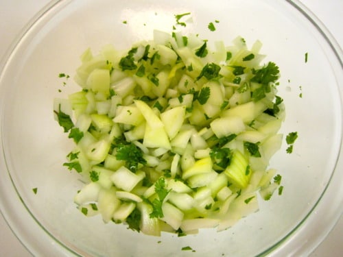 Add to a bowl with fresh cilantro and blend using an immersion blender or regular blender. (A food processor works as well.)