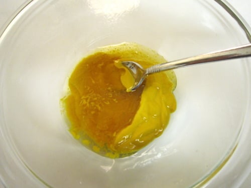In a bowl, mix together honey and yellow mustard until completely combined.