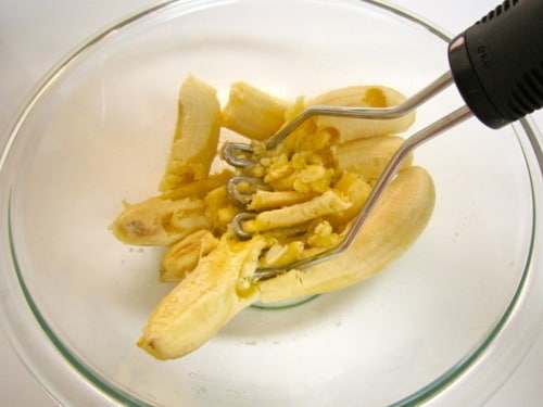 Sift flour mixture over banana mixture and stir using a rubber spatula just until moist.