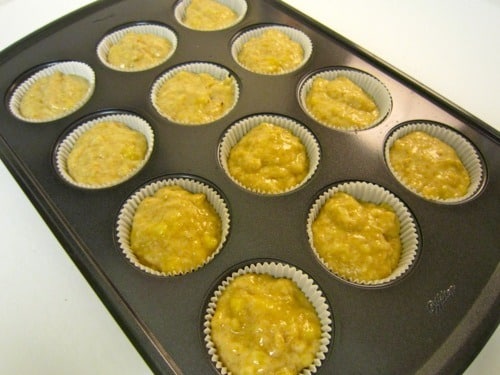 Line a 12-cup standard muffin tin with paper liners; set aside. (If you don’t want to use paper liners, you could coat a muffin pan with cooking spray instead.)