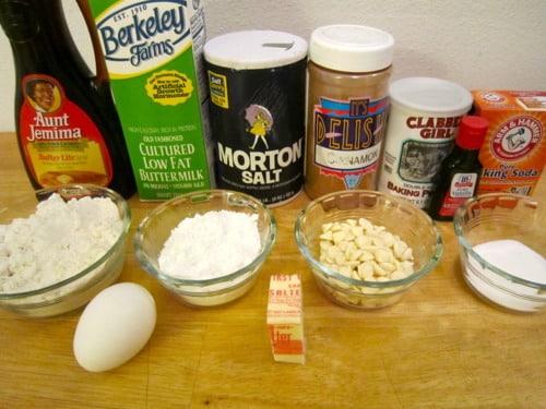 In a large glass measuring cup or another bowl, whisk together the buttermilk, egg, maple syrup, butter and vanilla.