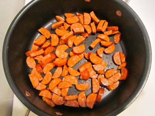 - 6 ounces andouille sausage, halved lengthwise and sliced into 1/4-inch-thick pieces