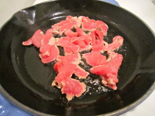 - 1 lb pork tenderloin, halved lengthwise and thinly sliced