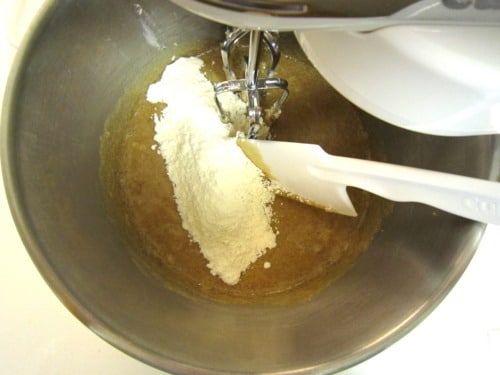 Gradually add flour mixture to the sugar mixture at low speed, beating just until incorporated.