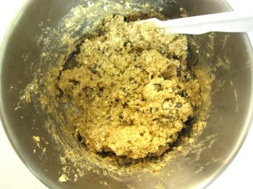 Drop tablespoons of batter onto prepared baking sheet. (Be sure to flatten these before they go in the oven. I didn’t know about this until my second batch so my first batch turned out to be oatmeal cookie balls!)