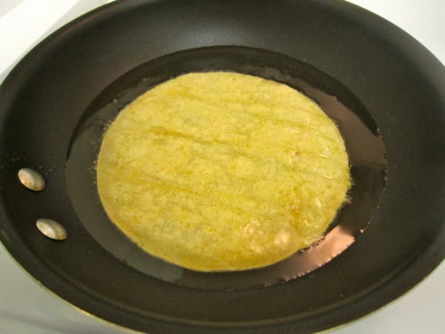 Using tongs, fry the tortillas one at a time, not allowing it to crisp, about 5-10 seconds per side.