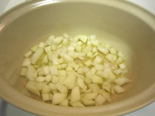 Heat remaining 1 tablespoon olive oil in a Dutch oven over medium heat. Add the onions and cook until beginning to soften, about 5 minutes.