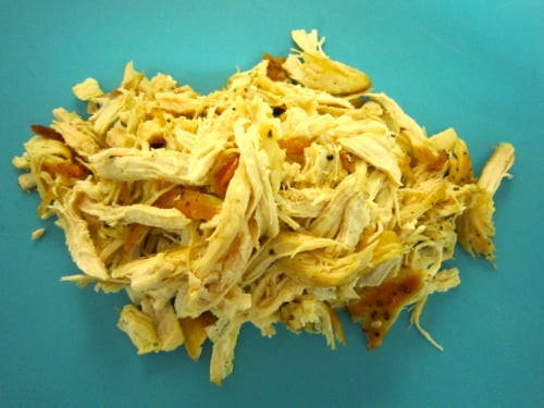 Once the chicken has rested, shred with a fork.