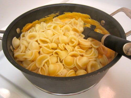 Reduce heat to low; add the pasta and gently toss to combine.