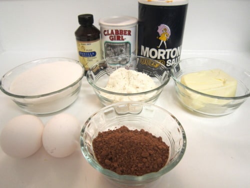 Add the cocoa, flour, salt and baking powder, stirring just until incorporated.