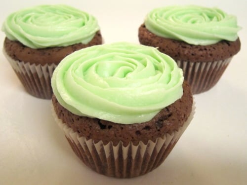Use a small offset spatula to spread the cupcakes with frosting. (I piped the frosting using a large Wilton 1M star tip.)