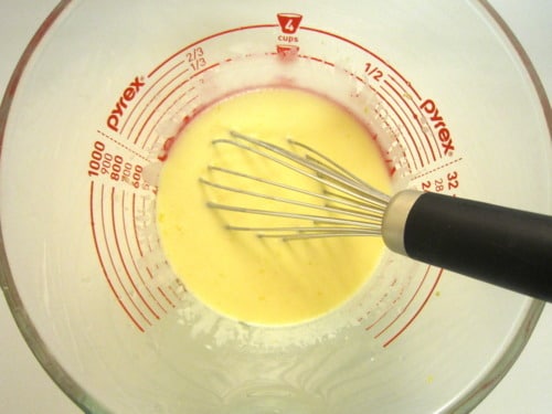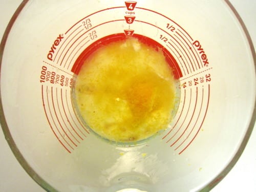 In a large glass measuring cup or another bowl, whisk together the yogurt, oil, sugar, egg, vanilla, lemon zest and lemon juice.