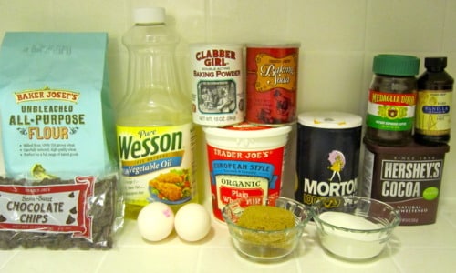 In a large bowl, combine the flour, baking powder, baking soda, salt and cocoa powder.