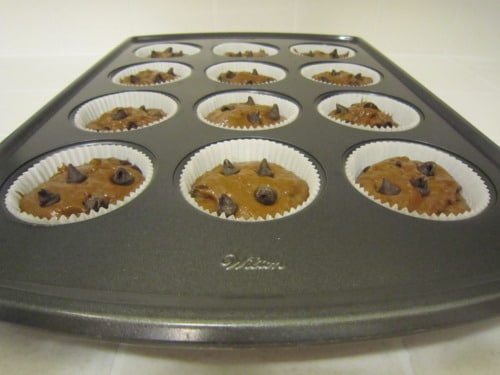 Line a 12-cup standard muffin tin with paper liners; set aside. (If you don’t want to use paper liners, you could coat a muffin pan with cooking spray instead.)