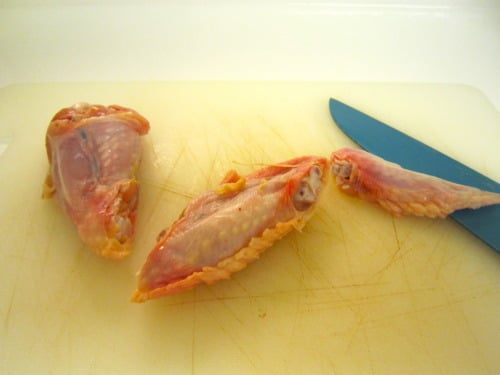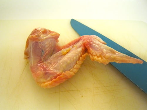 Remove the tips of the wings; discard or save for making stock. Using kitchen shears, or a knife, separate the wings at the joint.