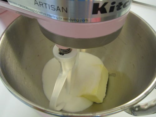 In the bowl of an electric mixer fitted with the paddle attachment, beat the butter and sugar on medium speed until light and fluffy, about 1 minute.