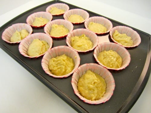 Line a 12-cup standard muffin tin with paper liners; set aside. (If you don’t want to use paper liners, you could coat a muffin pan with cooking spray instead.)