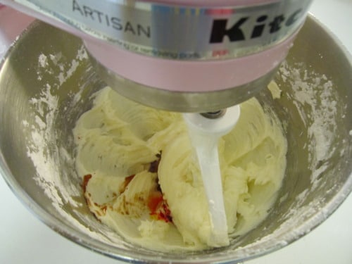 Add the vanilla, champagne, and yellow food coloring.