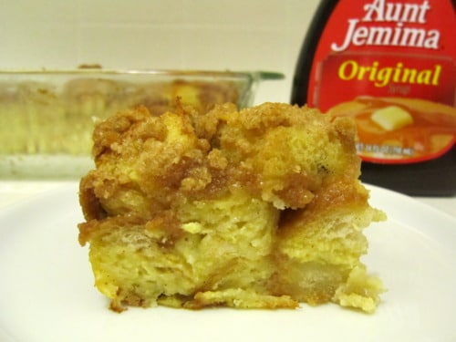 I’ve seen so many baked french toast recipes that I wanted to try but they all usually require a 9×13 baking dish, which is just WAY too much food for me and Jason. But I finally came across a recipe that fit beautifully in an 8×8 baking dish, which is still too much food but it’s less than the former so hooray for me!