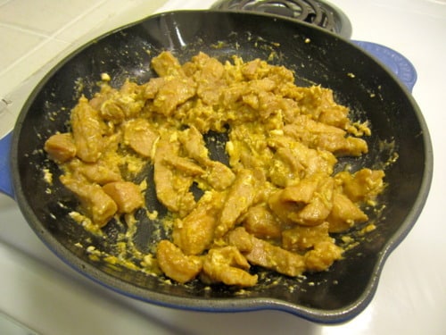 So before you pick up the phone to order Thai on a Friday night, I urge you to make this! It’s super easy – a quick marinade for the pork and then everything gets stir-fried in your skillet. That’s it!