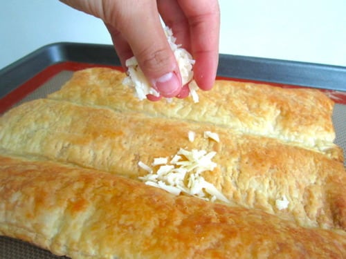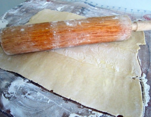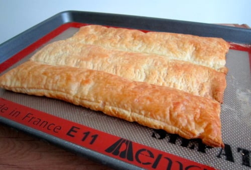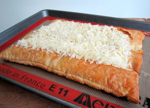 Roll the puff pastry into a 16-by-10-inch rectangle. (Mine wouldn’t go any further than 14-by-10-inches.)
