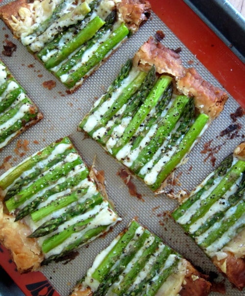 To be honest, I was actually planning on posting about Brown Eyed Baker’s Lofthouse Style Frosted Sugar Cookies, and I even bought green sugar sprinkles but once I read through the recipe, I knew I wouldn’t be able to pull it off in time. I’m a person with no patience, and these cookies require a little more time than I had anticipated since the dough had to be chilled in the refrigerator for at least 2 hours. And since I’ve started using natural light in most of my posts, I just didn’t want to fight the clock to the 7 o’clock sunset so I chose to make this easy, yet gorgeous looking asparagus and gruyere tart. It’s no corned beef and cabbage but it’s green so that counts for something, right?