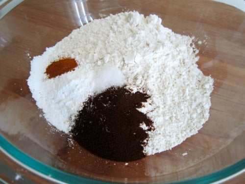 In a large bowl, combine the flour, espresso powder, cinnamon, baking powder and salt.