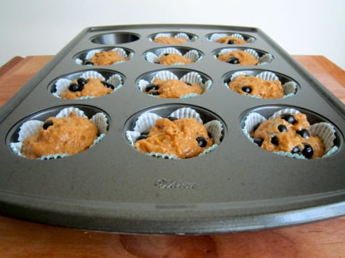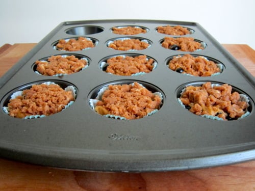 Line a 12-cup standard muffin tin with paper liners; set aside. (If you don’t want to use paper liners, you could coat a muffin pan with cooking spray instead.)