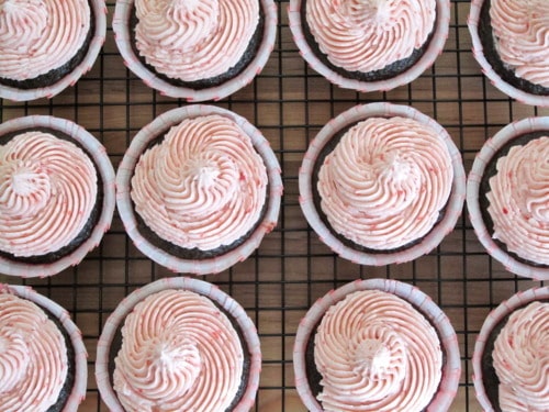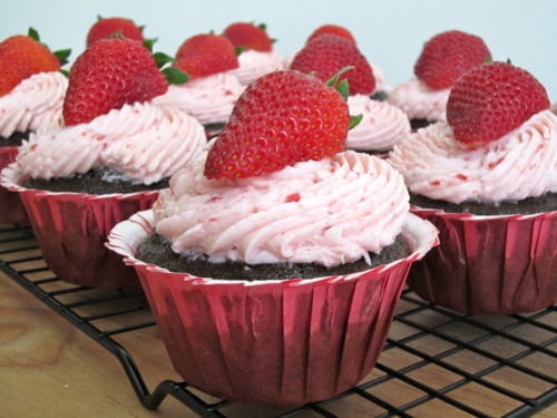 Mother’s Day Chocolate Cupcakes with Fresh Strawberry Buttercream