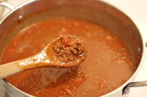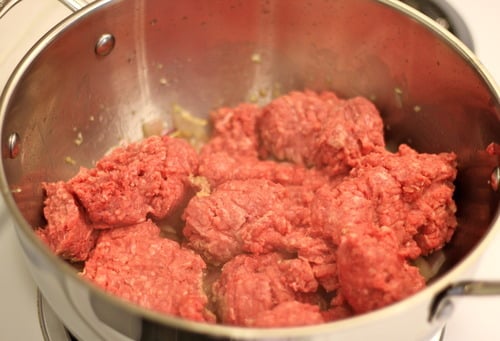 Add the beef and cook until browned, about 5-10 minutes, making sure to crumble the beef as it cooks.