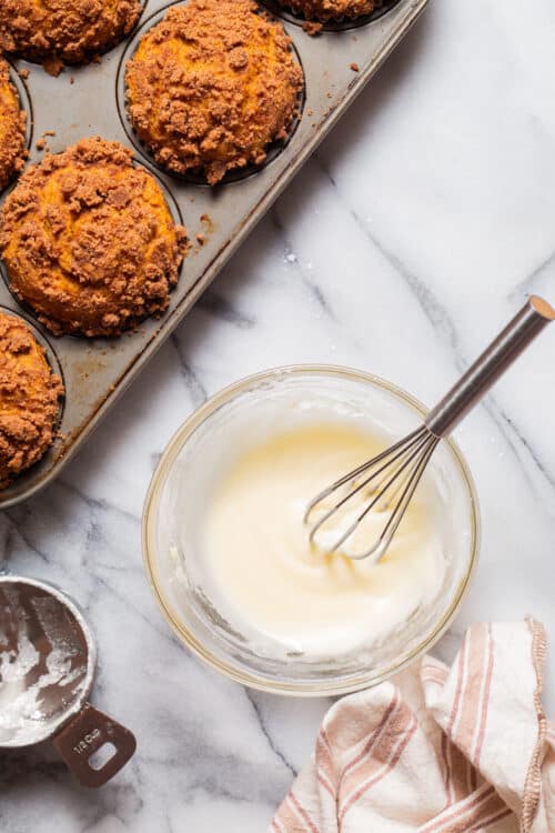 - Let the muffins cool for 5-10 minutes before drizzling with the glaze and serving