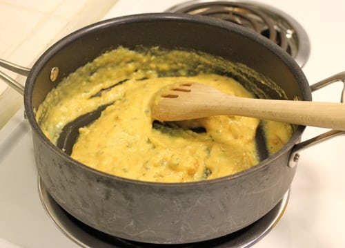 Then whisk in the milk and butternut squash puree. You can always add more milk to thin it out.