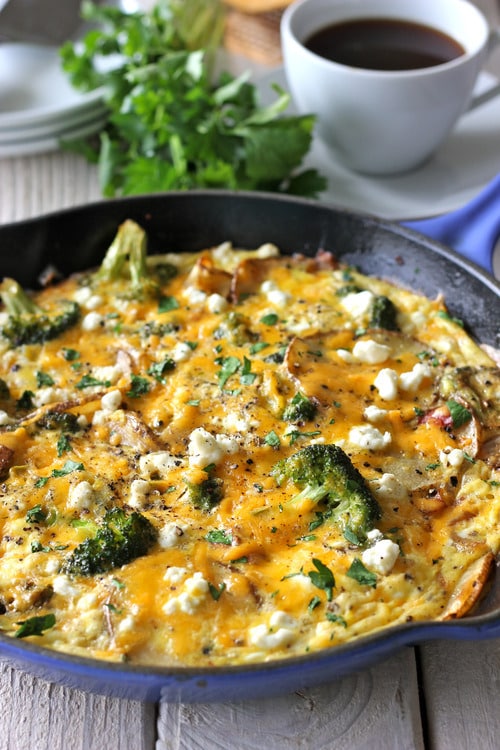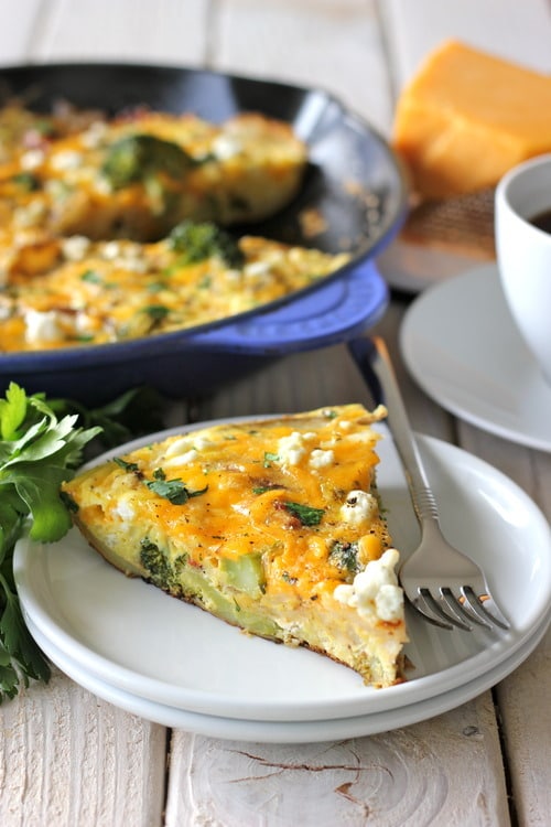 I don’t know why I never make frittatas as often as I should because it is seriously one of the most easiest things to make. Plus, you can use up any lingering veggies and throw them right in there instead of letting them rot in the fridge until they grow all that fuzzy stuff. Wait, is that just me?