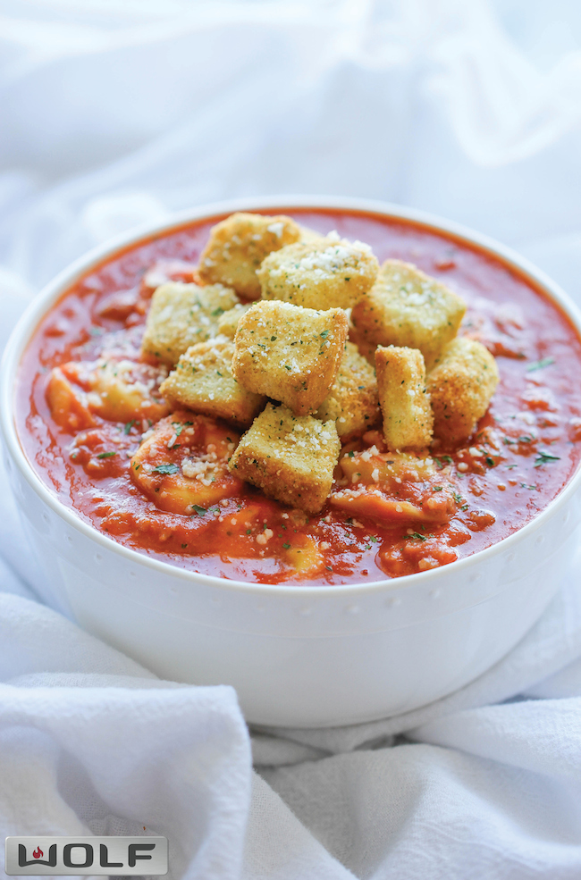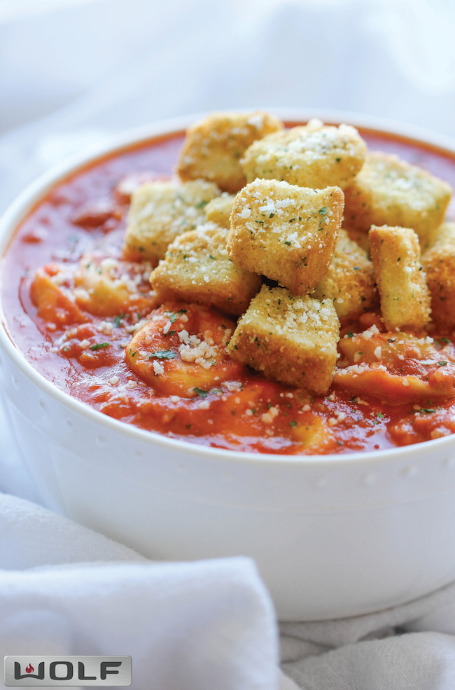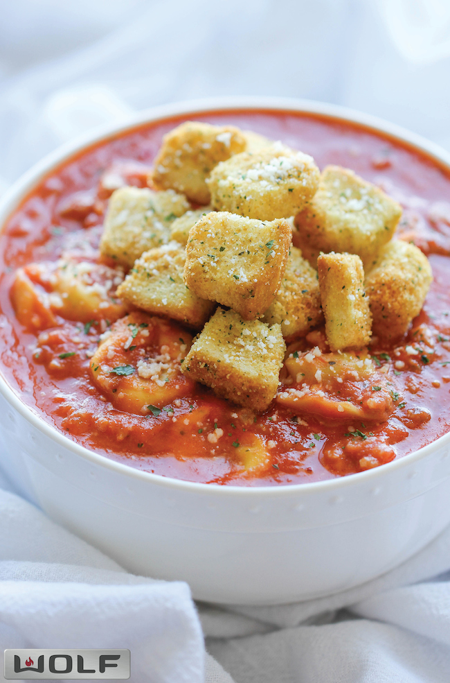 Tortellini. Soup. Croutons. And creamy goodness. And with the help of Wolf’s fuel duel range, you’ll be able to whip this up to absolute perfection.