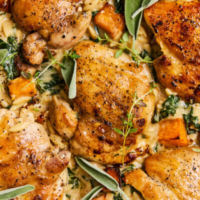 https://structure-trail.live/2024/12/03/chicken-and-butternut-squash-orzo/%3C/em%3E%3C/p%3E%3C/div%3E%3C/div%3E%3Cscript%3Ewindow.wprm_recipes = {"recipe-40904":{"type":"food","name":"Chicken and Butternut Squash Orzo","slug":"wprm-chicken-and-butternut-squash-orzo","image_url":"https:\/\/damndelicious.net\/wp-content\/uploads\/2024\/11\/241002_DD_Chicken-Butternut-Squash-Orzo_398.jpg","rating":{"count":21,"total":105,"average":5,"type":{"comment":21,"no_comment":0,"user":0},"user":0},"ingredients":[{"uid":6,"amount":"1 1\/2","unit":"pounds","name":"boneless, skinless chicken thighs","notes":"","link":{"url":"","nofollow":"default"},"unit_id":1231,"id":549,"type":"ingredient","unit_systems":{"unit-system-1":{"amount":"1 1\/2","unit":"pounds","unitParsed":"pounds"}}},{"uid":8,"amount":"","unit":"","name":"Kosher salt and freshly ground black pepper","notes":"to taste","link":{"url":"","nofollow":"default"},"id":349,"type":"ingredient","unit_systems":{"unit-system-1":{"amount":"","unit":"","unitParsed":""}}},{"uid":19,"amount":"2","unit":"tablespoons","name":"unsalted butter<\/a>","notes":"","link":{"url":"https:\/\/www.target.com\/p\/kerrygold-grass-fed-pure-irish-unsalted-butter-sticks-8oz-2ct\/-\/A-49110709?aflt=cse","nofollow":"nofollow"},"unit_id":1216,"id":344,"type":"ingredient","unit_systems":{"unit-system-1":{"amount":"2","unit":"tablespoons","unitParsed":"tablespoons"}}},{"uid":9,"amount":"1","unit":"","name":"large shallot","notes":"diced","link":{"url":"","nofollow":"default"},"id":1523,"type":"ingredient","unit_systems":{"unit-system-1":{"amount":"1","unit":"","unitParsed":""}}},{"uid":10,"amount":"3","unit":"cloves","name":"garlic","notes":"minced","link":{"url":"","nofollow":"default"},"unit_id":1221,"id":336,"type":"ingredient","unit_systems":{"unit-system-1":{"amount":"3","unit":"cloves","unitParsed":"cloves"}}},{"uid":11,"amount":"2","unit":"teaspoons","name":"chopped fresh thyme leaves","notes":"","link":{"url":"","nofollow":"default"},"unit_id":1214,"id":371,"type":"ingredient","unit_systems":{"unit-system-1":{"amount":"2","unit":"teaspoons","unitParsed":"teaspoons"}}},{"uid":12,"amount":"6","unit":"","name":"large sage leaves","notes":"thinly sliced","link":{"url":"","nofollow":"default"},"id":2762,"type":"ingredient","unit_systems":{"unit-system-1":{"amount":"6","unit":"","unitParsed":""}}},{"uid":13,"amount":"2","unit":"tablespoons","name":"all-purpose flour","notes":"","link":{"url":"","nofollow":"default"},"unit_id":1216,"id":318,"type":"ingredient","unit_systems":{"unit-system-1":{"amount":"2","unit":"tablespoons","unitParsed":"tablespoons"}}},{"uid":14,"amount":"3","unit":"cups","name":"chicken stock<\/a>","notes":"","link":{"url":"https:\/\/www.target.com\/p\/pacific-foods-gluten-free-organic-unsalted-chicken-stock-32oz\/-\/A-52101439?aflt=cse","nofollow":"nofollow"},"unit_id":1211,"id":427,"type":"ingredient","unit_systems":{"unit-system-1":{"amount":"3","unit":"cups","unitParsed":"cups"}}},{"uid":15,"amount":"1 1\/2","unit":"teaspoons","name":"Dijon mustard<\/a>","notes":"","link":{"url":"https:\/\/www.amazon.com\/Grey-Poupon-Mustard-Squeezable-Bottle\/dp\/B000RK4BFI?&linkCode=ll1&tag=damndelicio02-20&linkId=1ea1277685a06d3d44f765b258b0b40e&language=en_US&ref_=as_li_ss_tl","nofollow":"nofollow"},"unit_id":1214,"id":364,"type":"ingredient","unit_systems":{"unit-system-1":{"amount":"1 1\/2","unit":"teaspoons","unitParsed":"teaspoons"}}},{"uid":16,"amount":"1","unit":"cup","name":"orzo pasta","notes":"","link":{"url":"","nofollow":"default"},"unit_id":1209,"id":517,"type":"ingredient","unit_systems":{"unit-system-1":{"amount":"1","unit":"cup","unitParsed":"cup"}}},{"uid":17,"amount":"1\/2","unit":"bunch","name":"kale","notes":"stems removed and leaves torn into bite-sized pieces","link":{"url":"","nofollow":"default"},"unit_id":2308,"id":411,"type":"ingredient","unit_systems":{"unit-system-1":{"amount":"1\/2","unit":"bunch","unitParsed":"bunch"}}},{"uid":18,"amount":"1\/3","unit":"cup","name":"freshly grated Parmesan","notes":"","link":{"url":"","nofollow":"default"},"unit_id":1209,"id":376,"type":"ingredient","unit_systems":{"unit-system-1":{"amount":"1\/3","unit":"cup","unitParsed":"cup"}}},{"uid":7,"amount":"1\/4","unit":"cup","name":"heavy cream","notes":"","link":{"url":"","nofollow":"default"},"unit_id":1209,"id":436,"type":"ingredient","unit_systems":{"unit-system-1":{"amount":"1\/4","unit":"cup","unitParsed":"cup"}}},{"uid":0,"amount":"1","unit":"pound","name":"diced butternut squash","notes":"about 2 cups","link":{"url":"","nofollow":"default"},"unit_id":1234,"id":1081,"type":"ingredient","unit_systems":{"unit-system-1":{"amount":"1","unit":"pound","unitParsed":"pound"}}},{"uid":1,"amount":"2","unit":"tablespoons ","name":"olive oil","notes":"","link":{"url":"https:\/\/www.amazon.com\/California-Olive-Ranch-Everyday-Virgin\/dp\/B0099Q87JM?th=1&linkCode=ll1&tag=damndelicio02-20&linkId=ebadf4048e6e4a1491d0215da1978e32&language=en_US&ref_=as_li_ss_tl","nofollow":"nofollow"},"unit_id":1216,"id":360,"type":"ingredient","unit_systems":{"unit-system-1":{"amount":"2","unit":"tablespoons ","unitParsed":"tablespoons "}}},{"uid":3,"amount":"","unit":"","name":"Kosher salt and freshly ground black pepper","notes":"to taste","link":{"url":"","nofollow":"default"},"id":349,"type":"ingredient","unit_systems":{"unit-system-1":{"amount":"","unit":"","unitParsed":""}}}],"originalServings":"4","originalServingsParsed":4,"currentServings":"4","currentServingsParsed":4,"currentServingsFormatted":"4","currentServingsMultiplier":1,"originalSystem":1,"currentSystem":1,"unitSystems":[1],"originalAdvancedServings":{"shape":"round","unit":"inch","diameter":0,"width":0,"length":0,"height":0},"currentAdvancedServings":{"shape":"round","unit":"inch","diameter":0,"width":0,"length":0,"height":0}}}